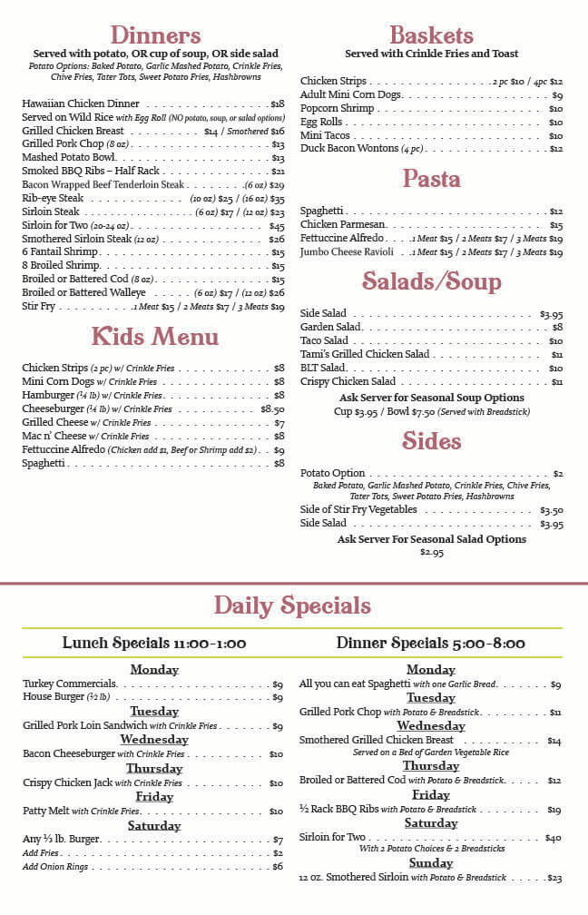 Finding a place for everyone in your party can be difficult. However, there’s good news: it doesn’t have to be. This is your destination for family-friendly dining. We’re a bar and restaurant that serves a number of different steaks, seafood, pasta, burgers, house made soups and salads, and sandwiches. While we have a bar atmosphere and seating, we also provide casual dining, as well as a banquet room on our lower level.